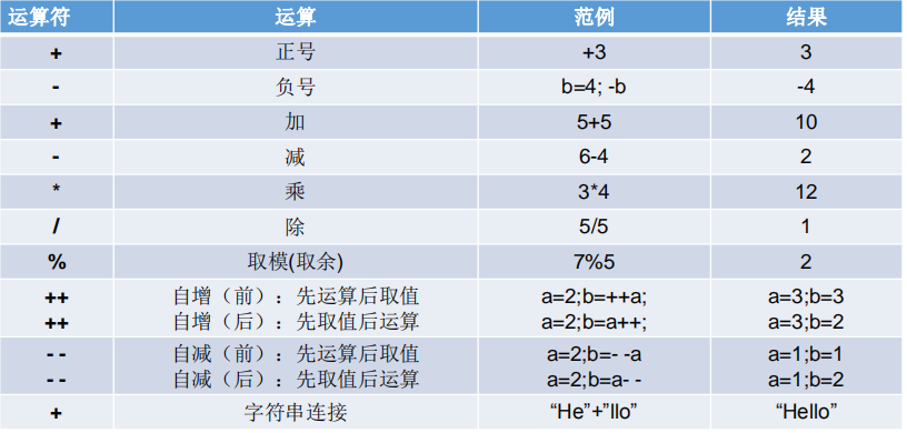 - 运算符是一种特殊的符号,用以表示数据的运算、赋值和比较等。