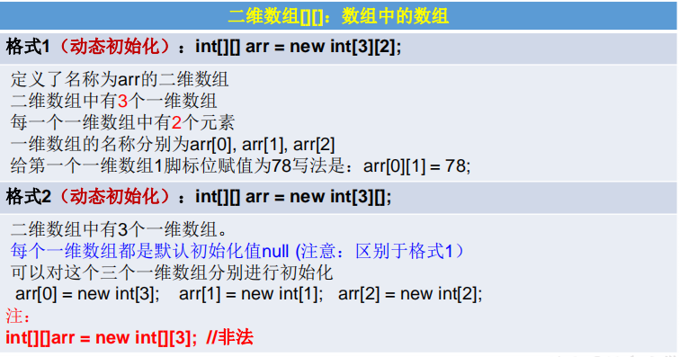- 动态初始化:数组声明且为数组元素分配空间与赋值的操作分开进行。