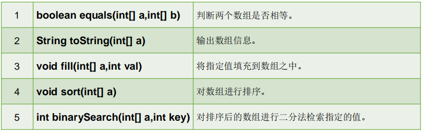 - java.util.Arrays类即为操作数组的工具类,包含了用来操作数组(比如排序和搜索)的各种方法。