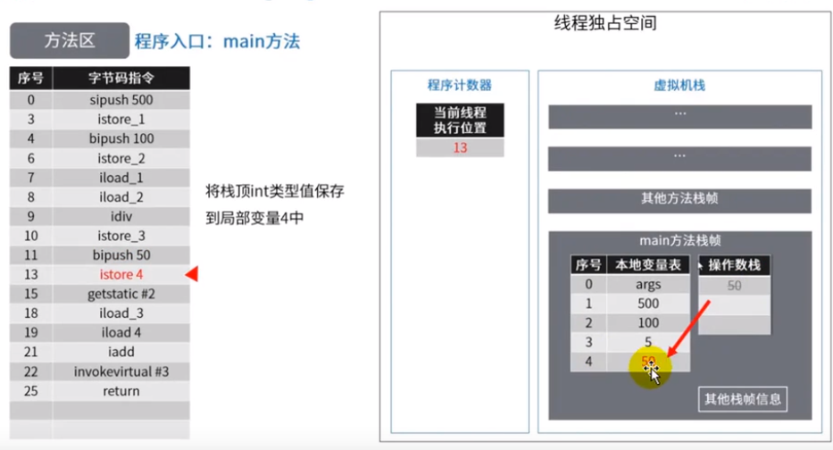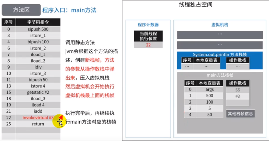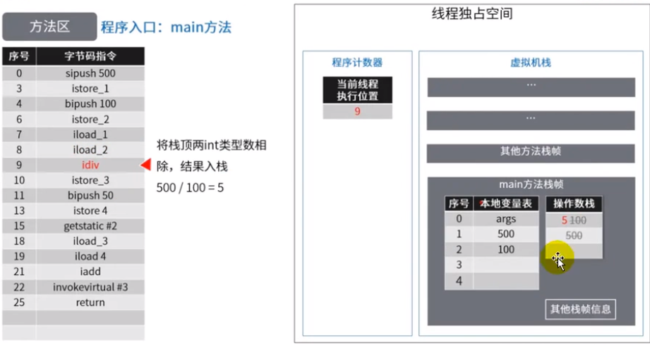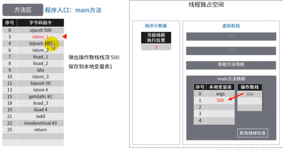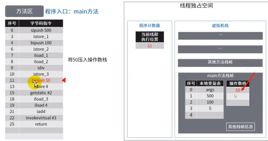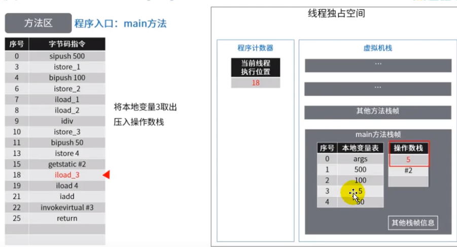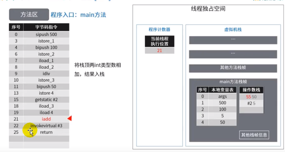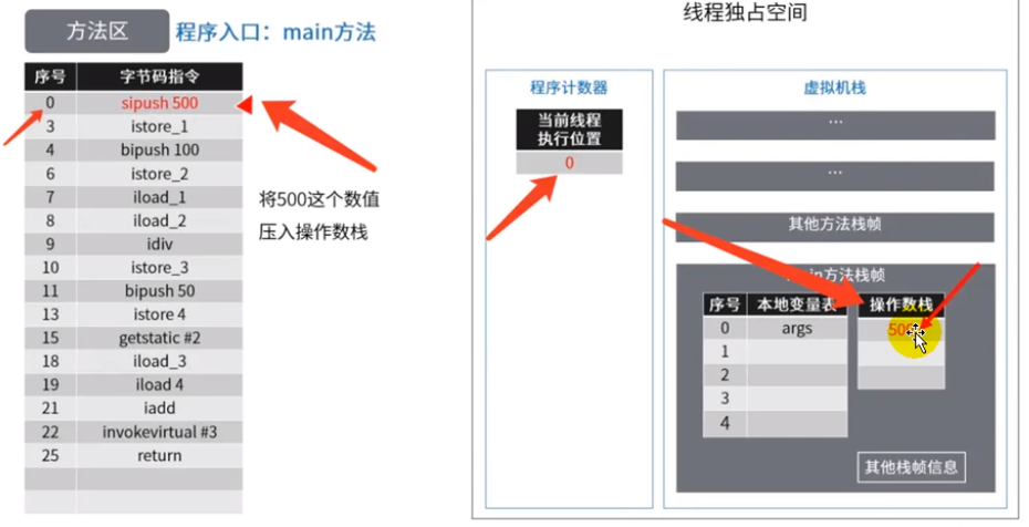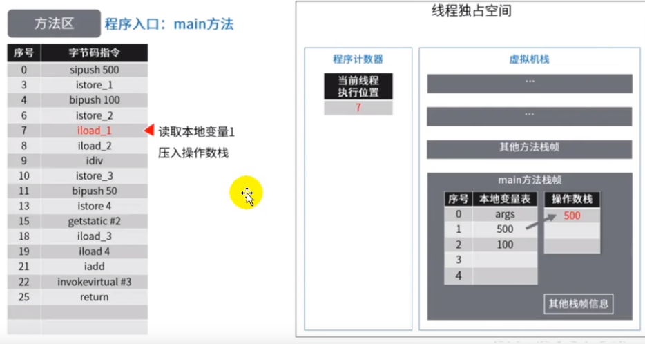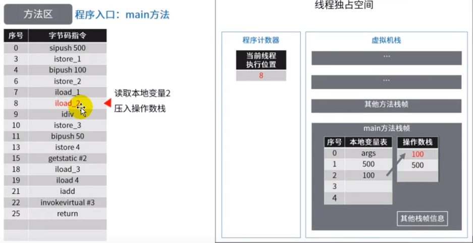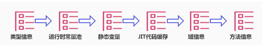 - 方法区用于存储已被虚拟机加载的类型信息,常量,静态变量,即时编译器编译后的代码缓存等。