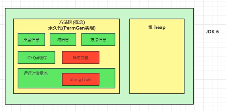- jdk6及之前:有永久代(permanent generation),静态变量存放在永久代上。