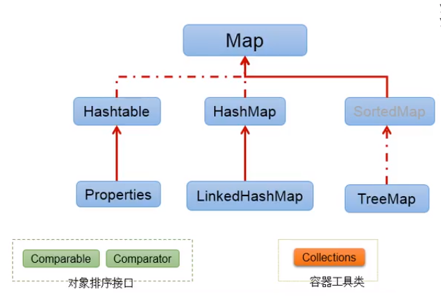 - HashMap、LinkedHashMap、TreeMap、Hashtable、Properties。