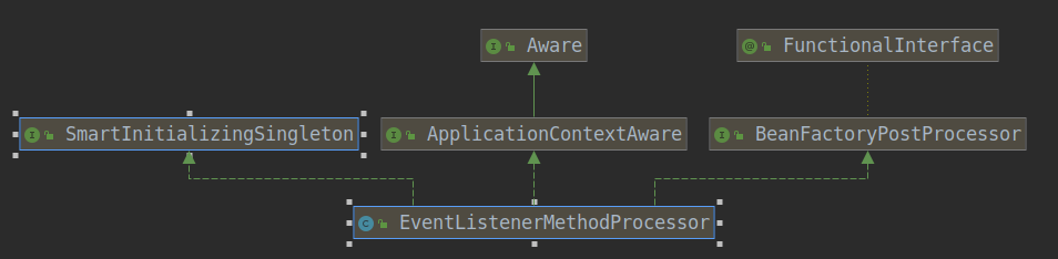 MyEventListener监听到的事件:org.springframework.context.event.ContextClosedEvent[source=org.springframework.context.annotation.AnnotationConfigApplicationContext@5010be6, started on Thu Dec 03 22:38:02 CST 2020]原理是使用EventListenerMethodProcessor(BeanFactoryPostProcessor和SmartInitializingSingleton接口的实现类)来解析方法上的@EventListener,将其生成ApplicationListener(ApplicationListenerMethodAdapter)对象,在publishEvent时,通过getApplicationEventMulticaster().multicastEvent(applicationEvent, eventType)函数,获取到ApplicationListener对象,通过反射调用方法。