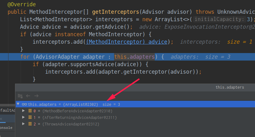 ②如果不是,使用AdvisorAdapter将增强器转为MethodInterceptor。适配器内容如下图: