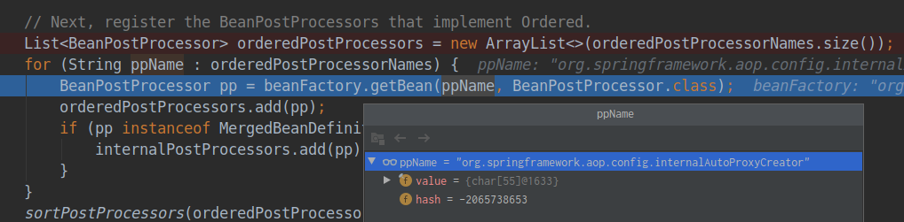 //注册AnnotationAwareAspectJAutoProxyCreator,这里的cls是AnnotationAwareAspectJAutoProxyCreator。