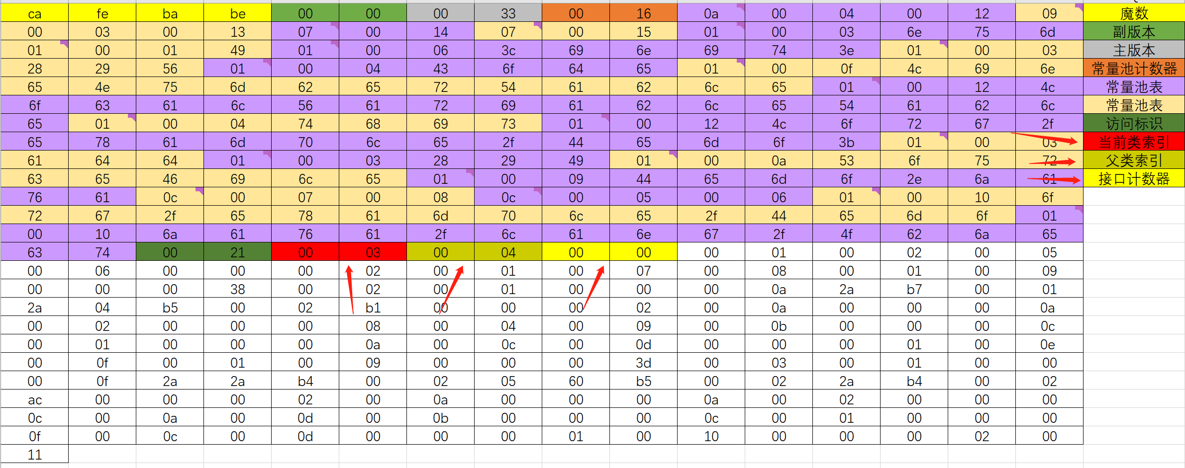 - 由于一个类可以实现多个接口,因此需要以数组形式保存多个接口的索引,表示接口的每个索引也是一个指向常量池的CONSTANT_Class(当然这里就必须是接口,而不是类)。