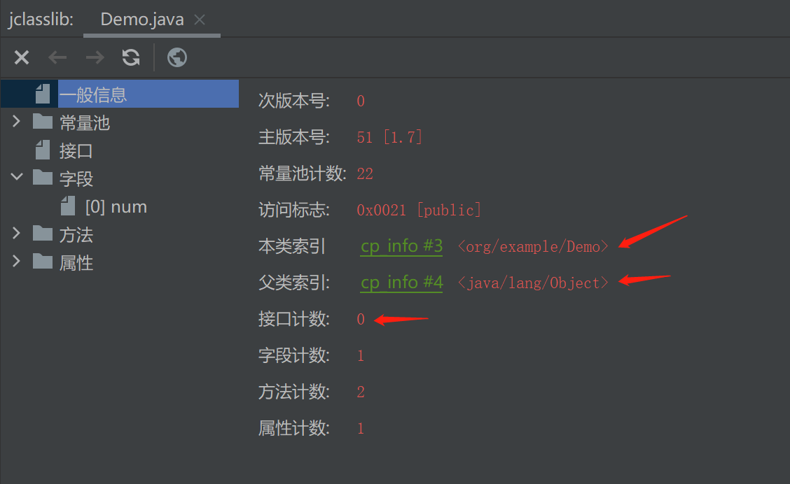 - interfaces_count项的值表示当前类或接口的直接超接口数量。