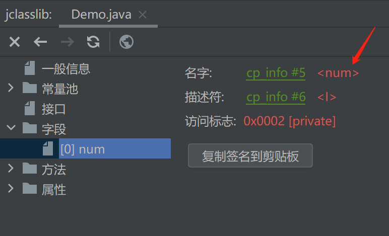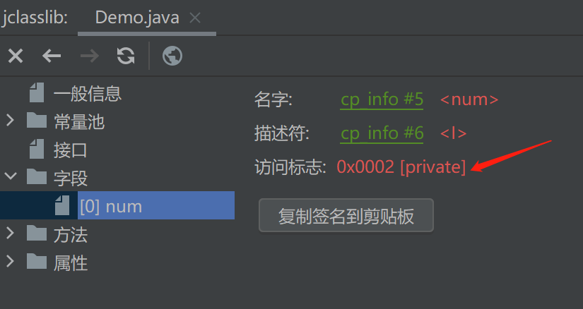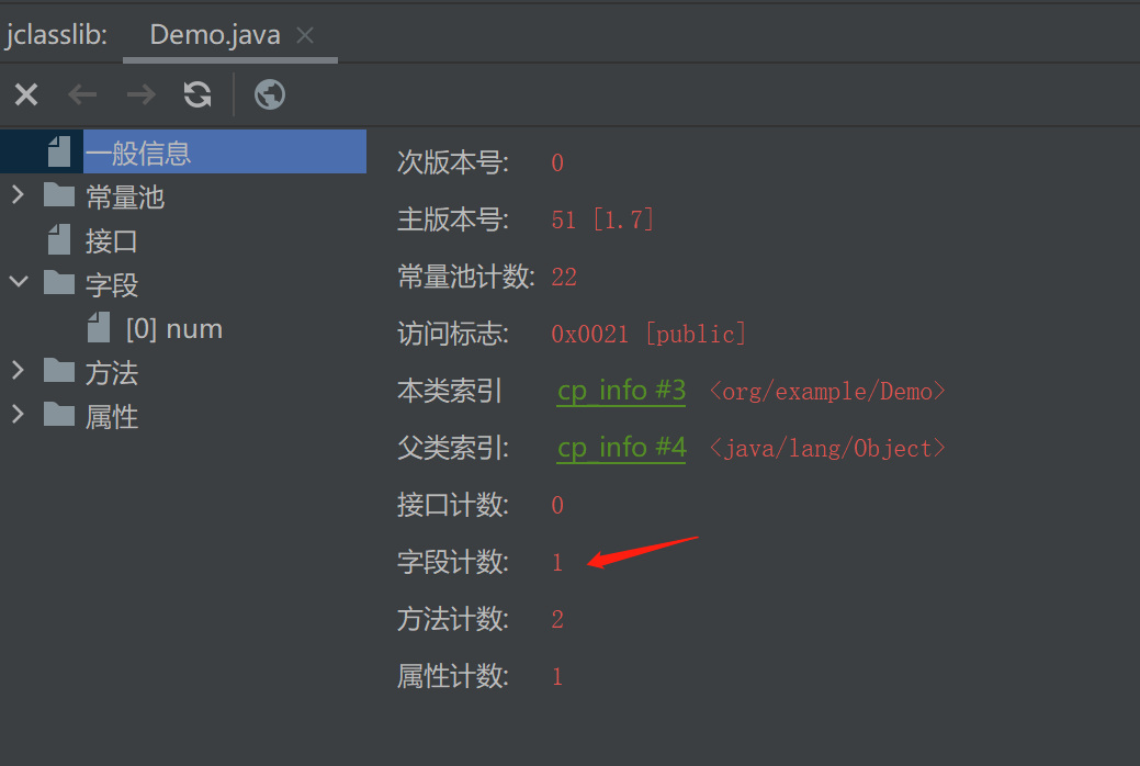 上述例子只有个num字段,没有对应的属性信息,除非该字段设定为final。