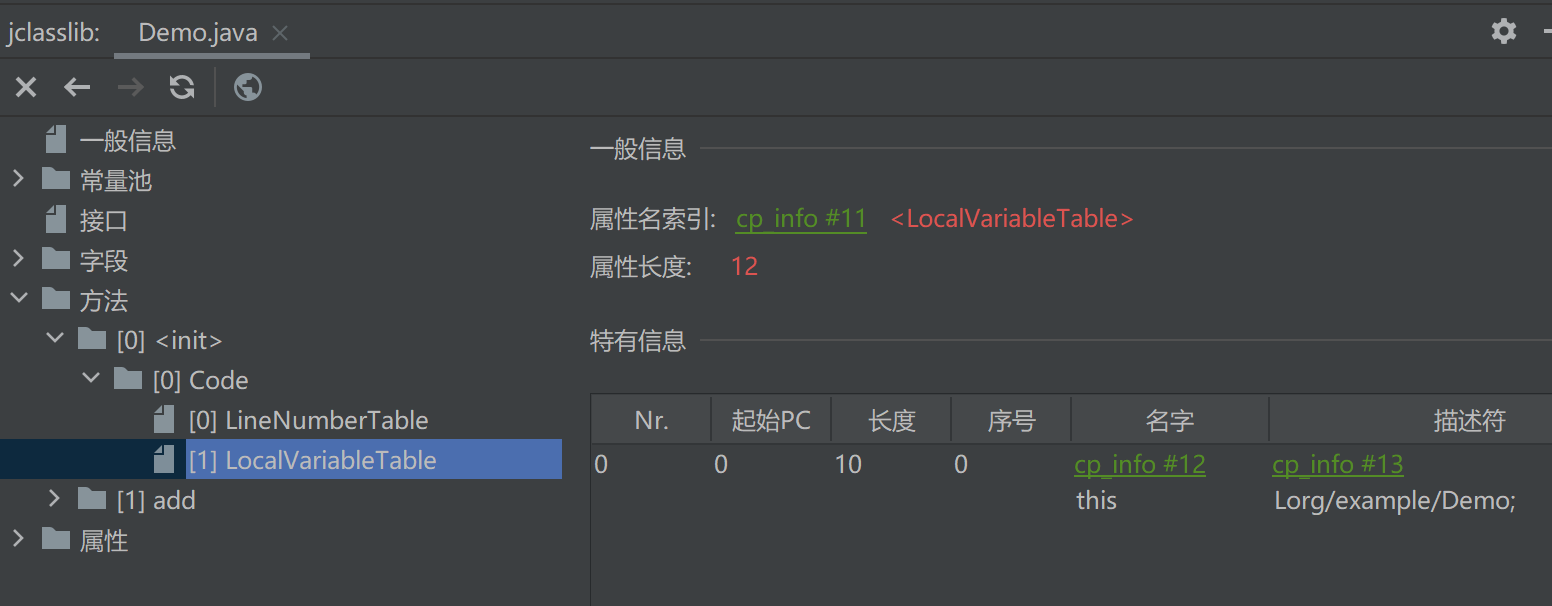 从而找到第一个方法(构造方法)对应的LocalVariableTable属性表:
