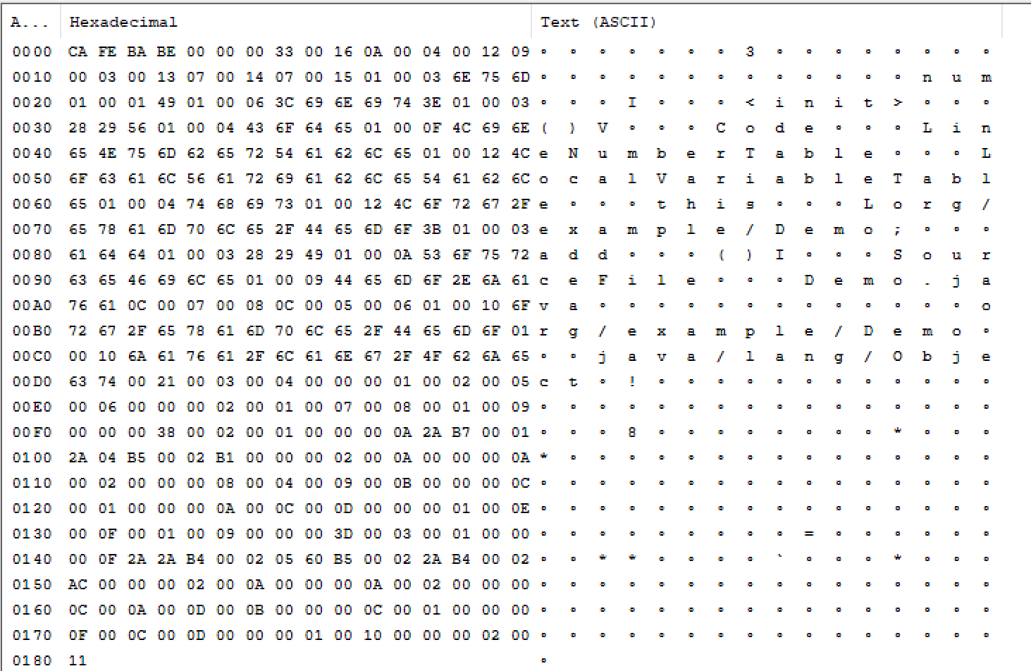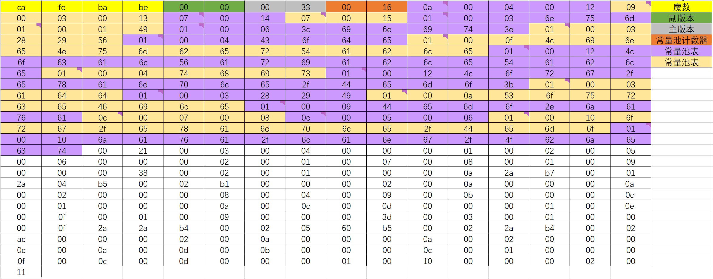 - 虚拟机JDK版本为1.k(k>=2)时,对应的class文件格式版本号的范围为45.0~(44+k.0)。