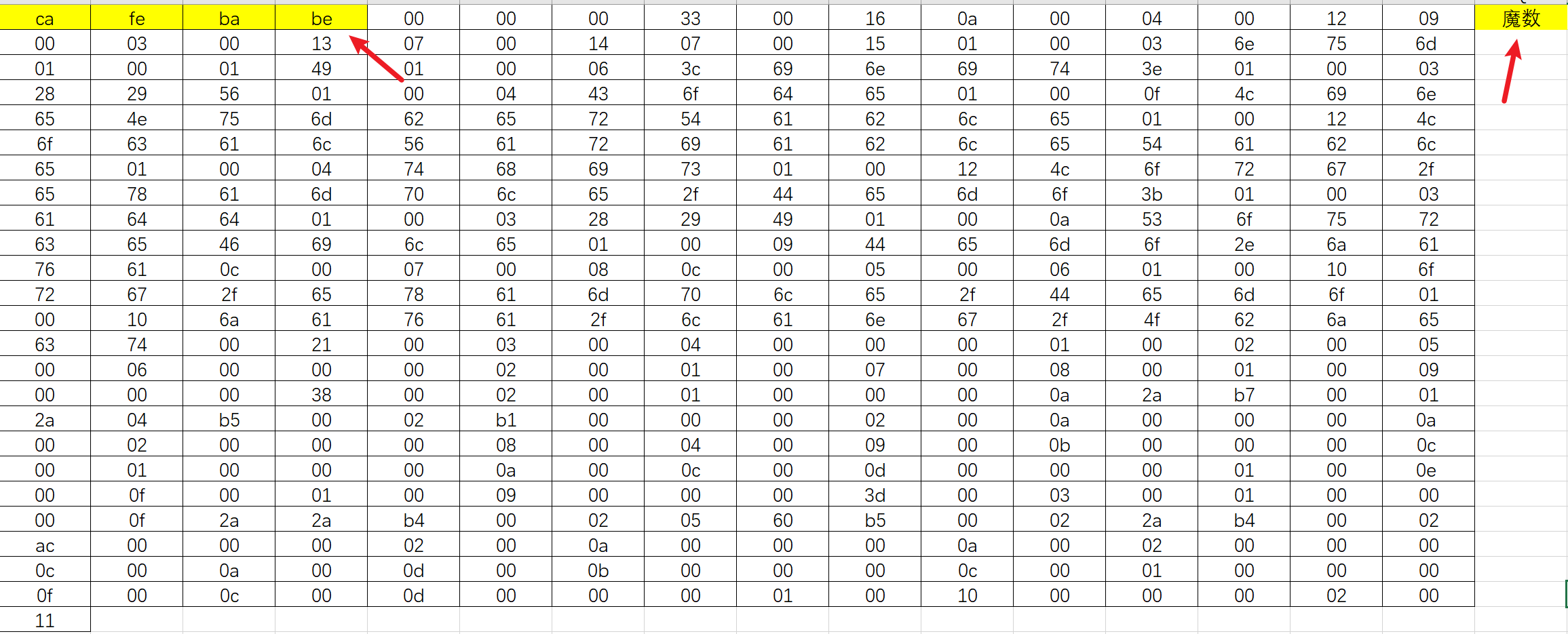 - 魔数值固定为0xCAFEBABE,不会改变。