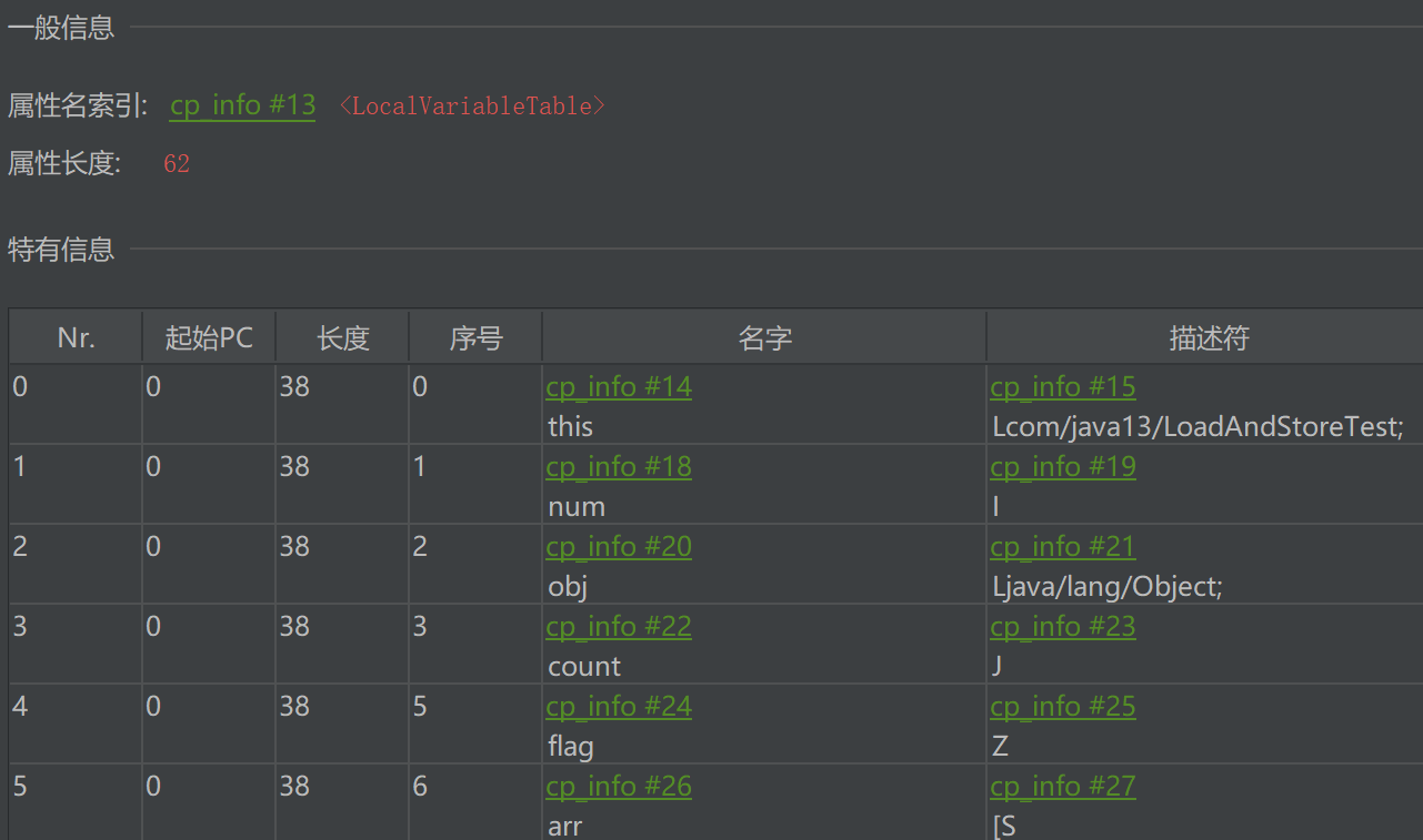 - 局部变量压栈指令将给定的局部变量表中的数据压入操作数栈。