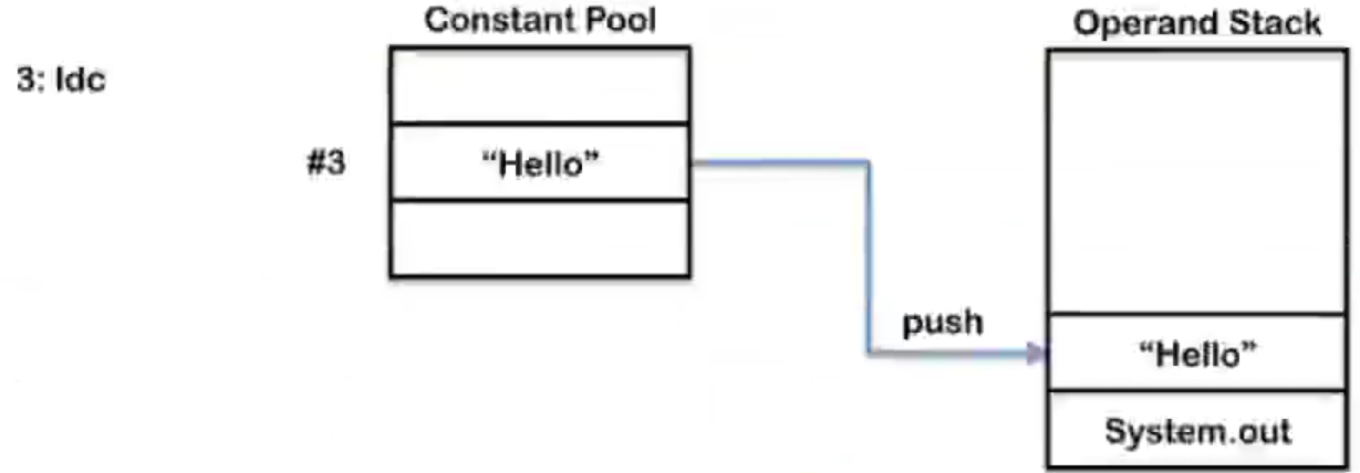 - 如果以上指令都不能满足需求,那么可以使用万能的ldc指令,它可以接收一个8位的参数,该参数指向常量池中的int、float或者string的索引,将指定的内容压入堆栈。