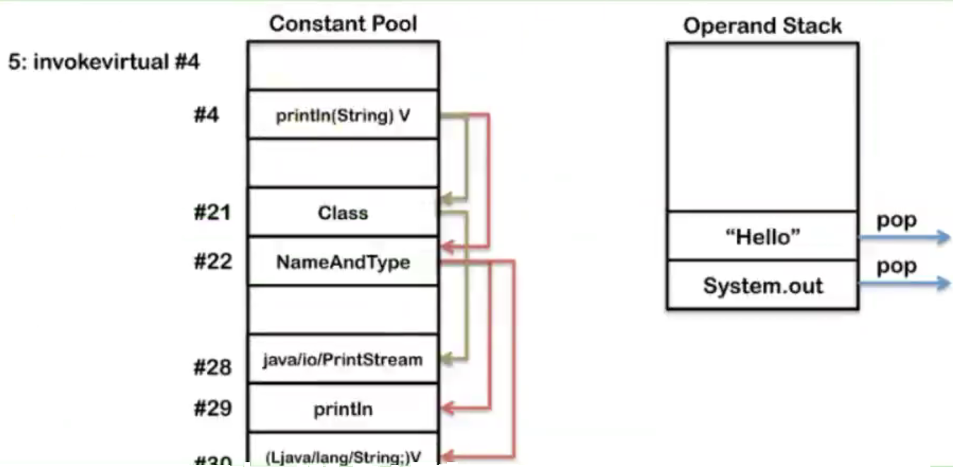 - 一个指令,也可以从操作数栈中取出一到多个值(pop多次),完成赋值、加减乘除、方法传参、系统调用等等操作。