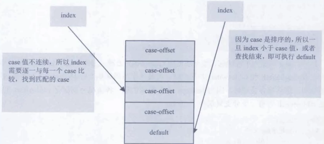 - 多条件分支跳转指令是专为switch-case语句设计的,主要有tableswitch和lookupswitch。