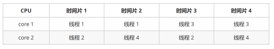 多核cpu下,每个核(core)都可以调度运行线程,这时候线程可以是并行的。