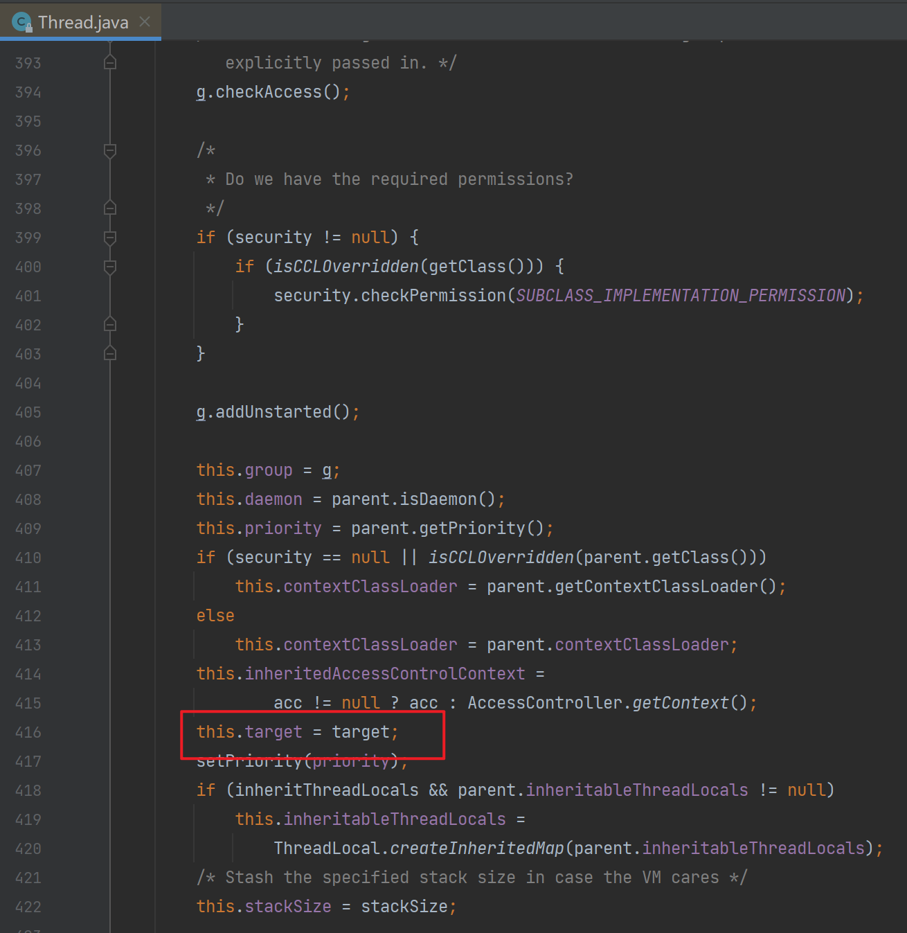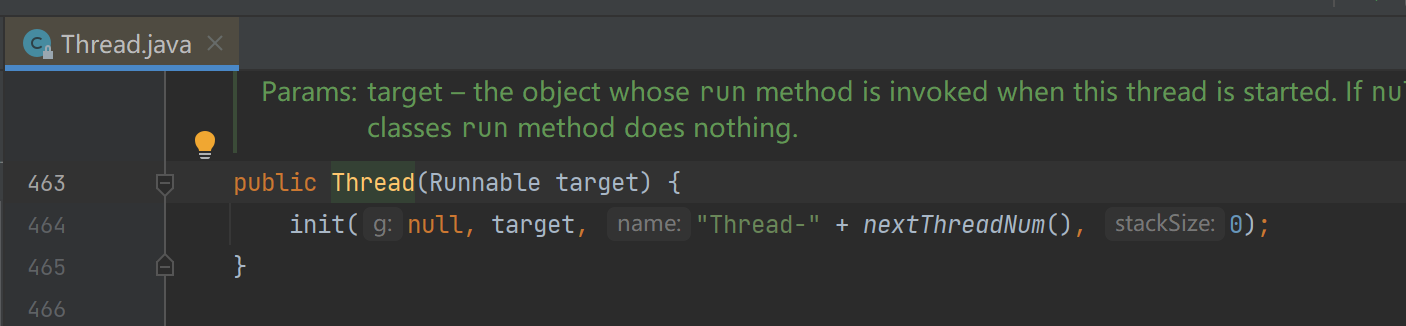 使用带有构造器参数的方式传入Runnable的实例时通过源码可以看到实际上最终这个对象会被赋值给Thread类里一个名为target,类型为Runnable的成员变量。并且在执行Thread.run()方法时会判断target是否为null,如果不为null才优先执行target.run()。