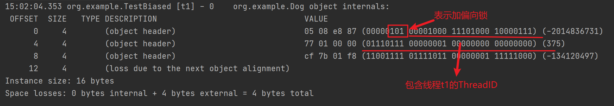 ①t1线程的前39次打印都分别给新创建的dog对象加了偏向锁。