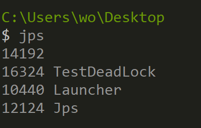 第一种方式:运行程序,打开终端运行jps,使用jps定位进程id,再用【jstack+进程id】定位死锁。打印信息如下: