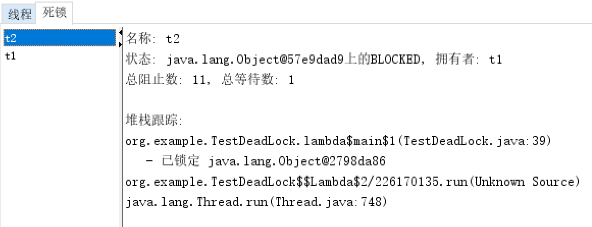 10:55:57.053 org.example.TestDeadLock [t2] - lock B定位死锁的方法