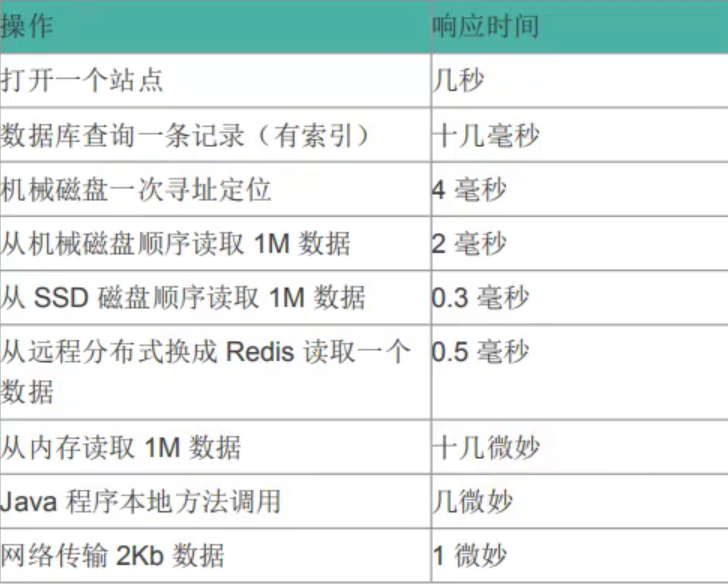 指提交请求和返回该请求的响应之间使用的时间,一般比较关注平均响应时间常用操作的响应时间列表: