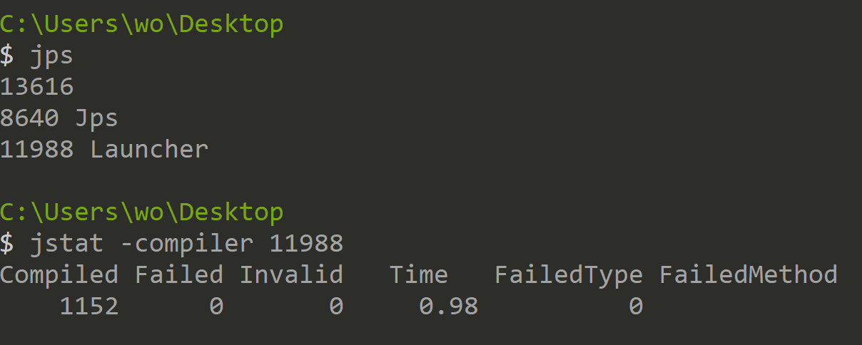 如果某Java班程关闭了默认开启的UsePerfData参数(即使用参数-XX:-UsePerfData),那么jps命令(以及下面介绍的jstat)将无法探知该Java进程。