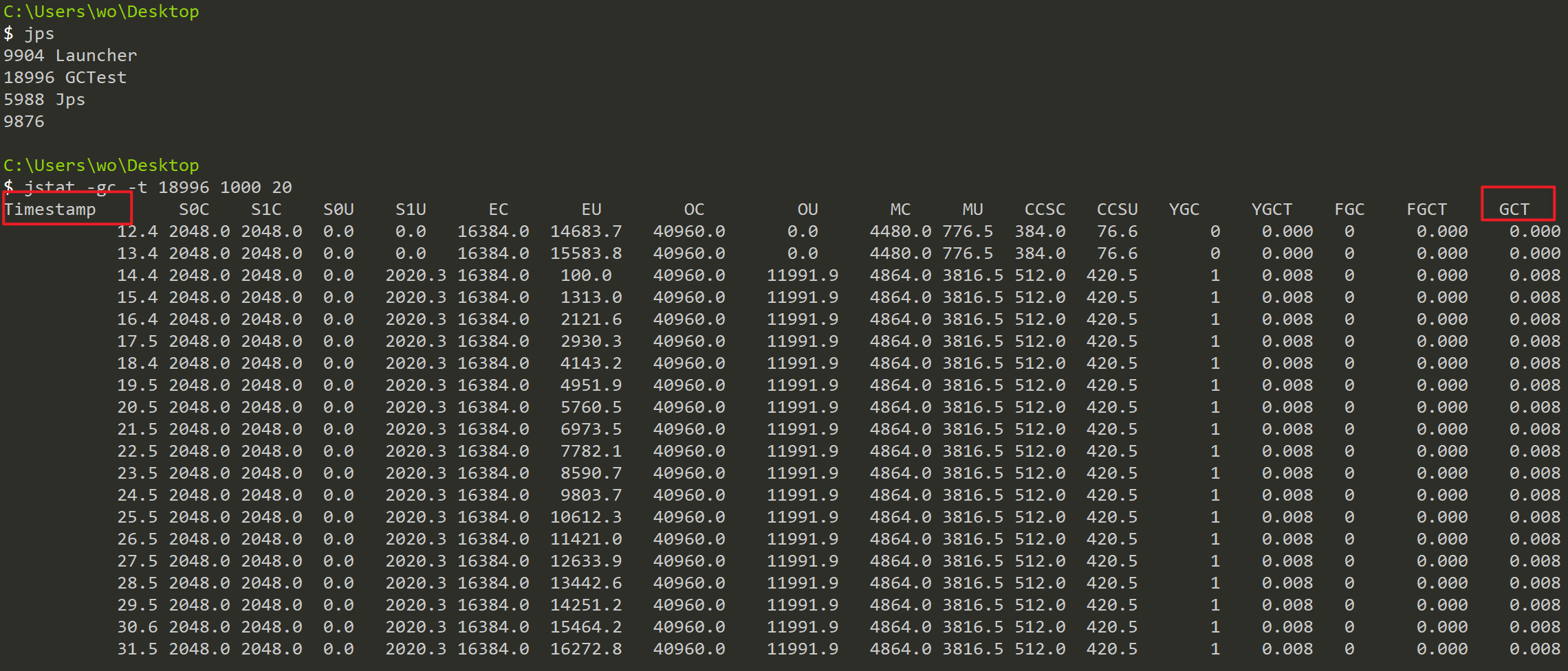 -gcutil:显示内容与-gc基本相同,但输出主要关注己使用空间占总空间的百分比。运行程序后测试结果如下:
