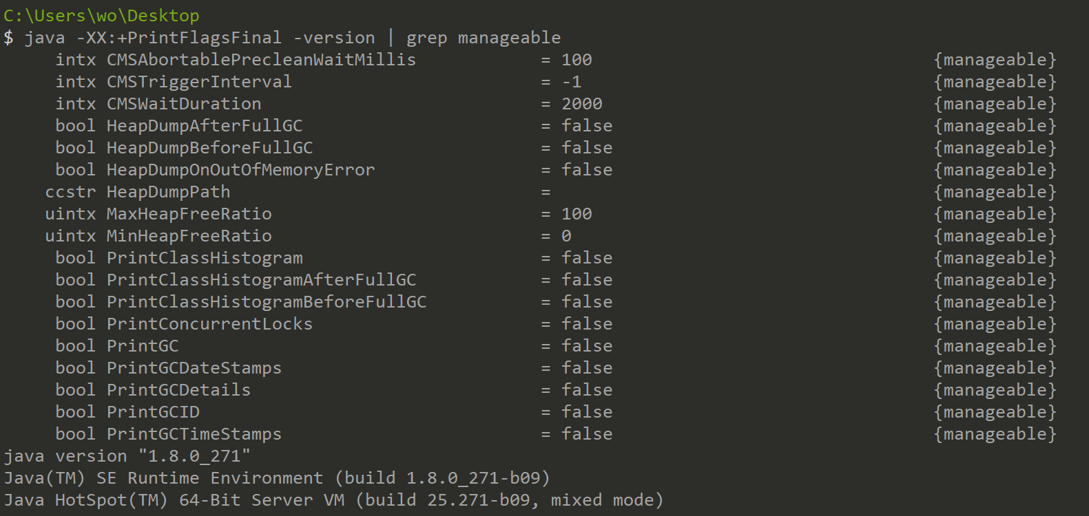 可以查看被标记为manageable的参数(java -XX:+PrintFlagsFinal -version | grep manageable)。