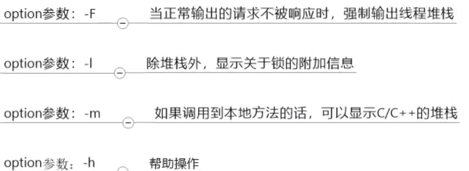 jstack [-m] [-l] [server_id@]<remote server IP or hostname>option参数: