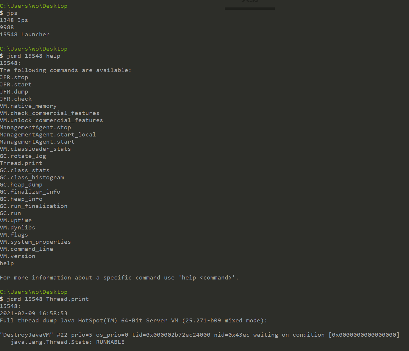 ②jcmd pid help:针对指定的进程,列出支持的所有命令。