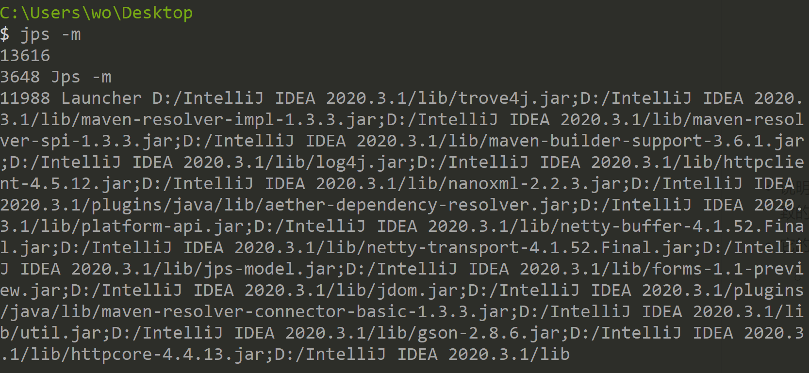 -l:输出应用程序主类的全类名或如果进程执行的是jar包,则输出jar完整路径。