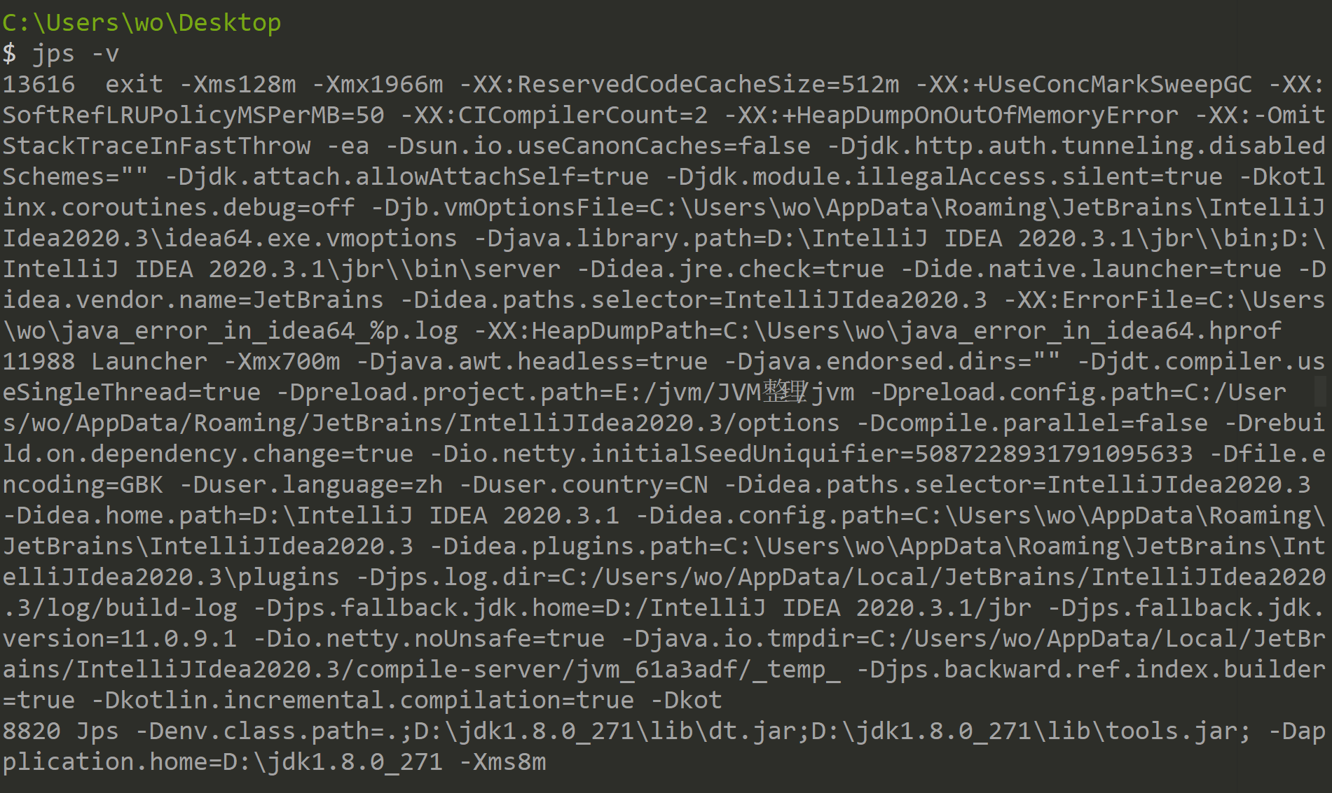 jps(Java Process Status):显示指定系统内所有的HotSpot虚拟机进程(查看虚拟机进程信息),可用于查询正在运行的虚拟机进程。