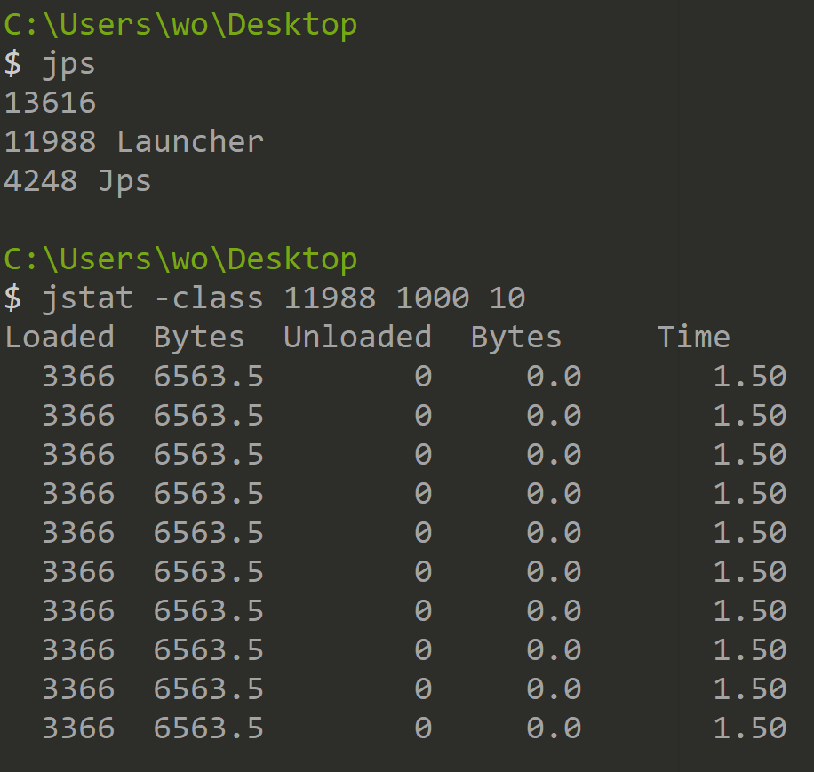 -class:显示ClassLoader的相关信息:类的装载、卸载数量、总空间、类装载所消耗的时间等。
