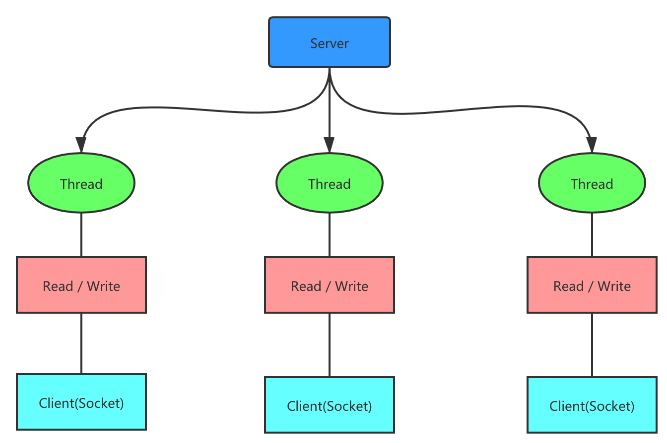 使用BIO模型编写一个服务器端,监听6666端口,当有客户端连接时,就启动一个线程与之通讯。