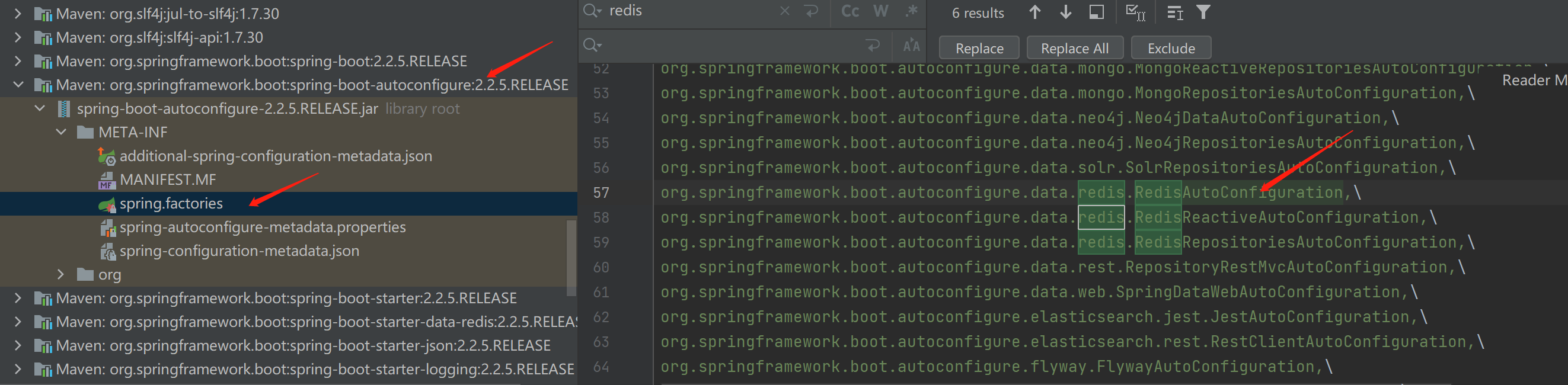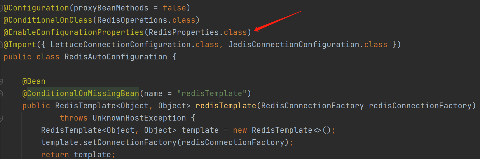 可以在SpringBoot的配置文件中找到关于Redis的自动配置类RedisAutoConfiguration: