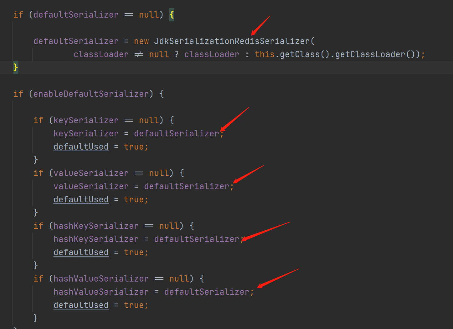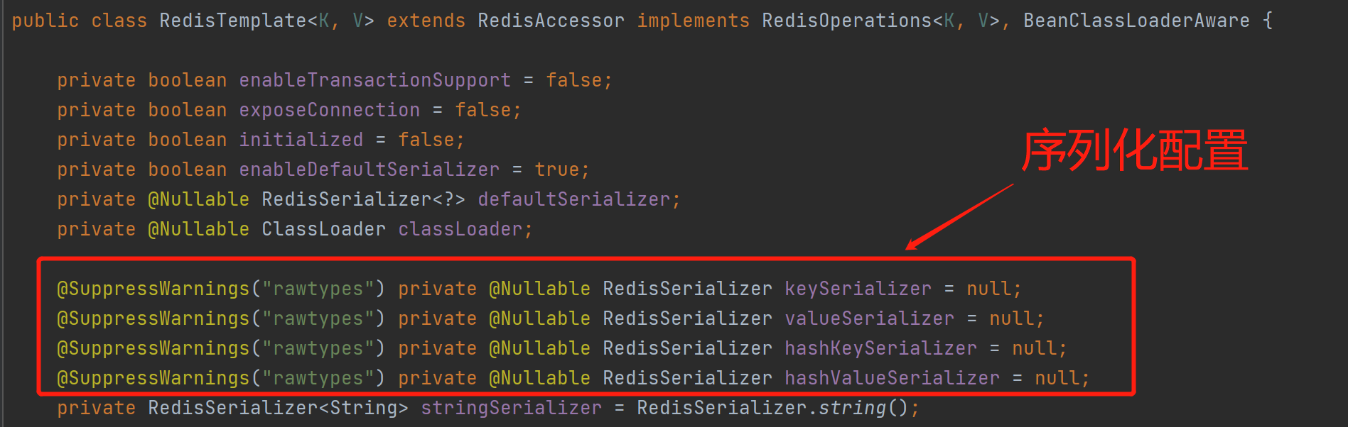 查看RedisTemplate类中默认的是使用jdk序列化方式: