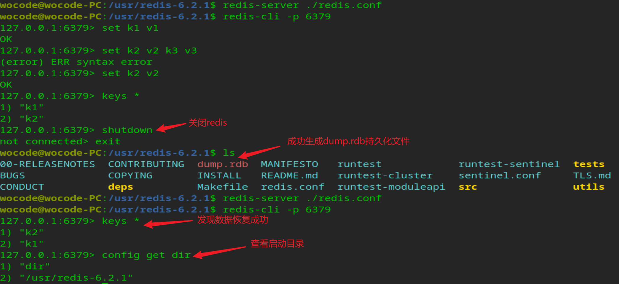 恢复数据则只需要将dump.rdb文件放在redis启动目录即可。