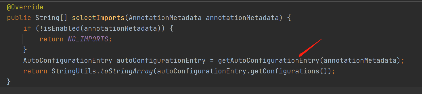②@Import(AutoConfigurationImportSelector.class)注解将AutoConfigurationImportSelector类导入到容器中,此类的selectImports()调用getAutoConfigurationEntry()给容器中批量导入一些组件。
