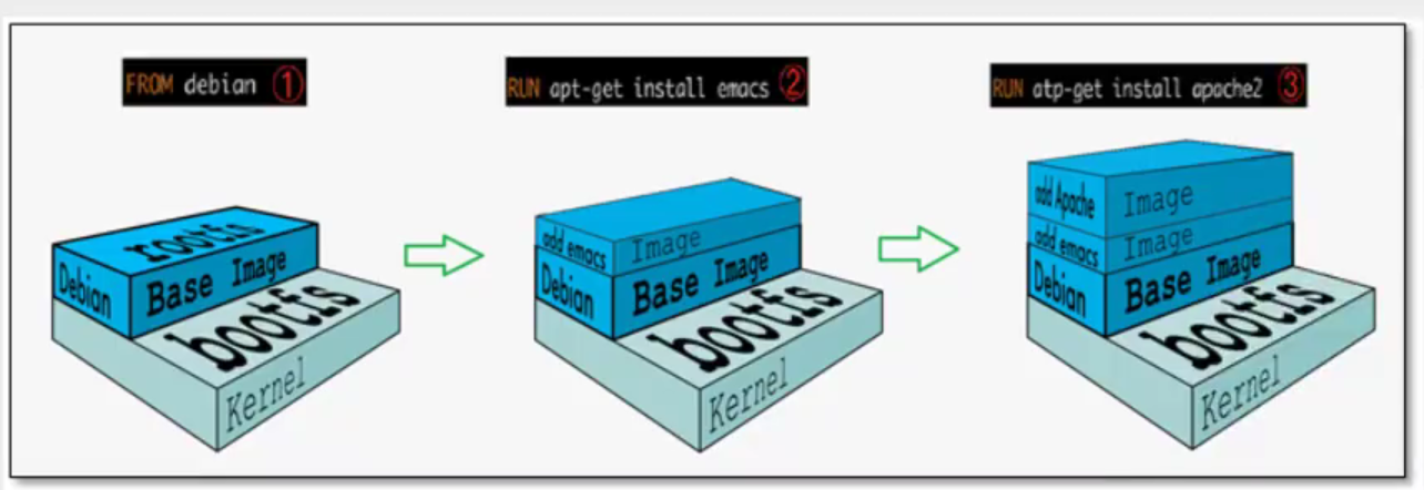 这种情况下,上层镜像层中的文件覆盖了底层镜像层中的文件。这样就使得文件的更新版本作为一个新镜像层添加到镜像当中。
