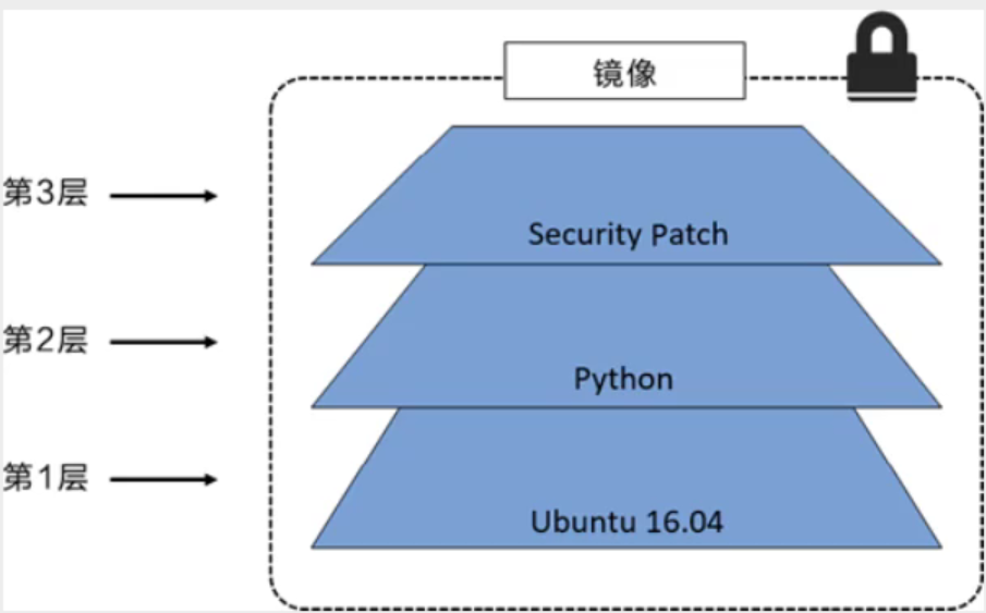 所有的Docker镜像都起始于一个基础镜像层,当进行修改或增加新的内容时,就会在当前镜像层之上,创建新的镜像层。举一个简单的例子,假如基于Ubuntu Linux 16.04创建一个新的镜像,这就是新镜像的第一层;如果在该镜像中添加Python包,就会在基础镜像层之上创建第二个镜像层;如果继续添加一个安全补丁,就会创建第三个镜像层。该镜像当前已经包含3个镜像层,如下图所示(这只是一个用于演示的很简单的例子)。
