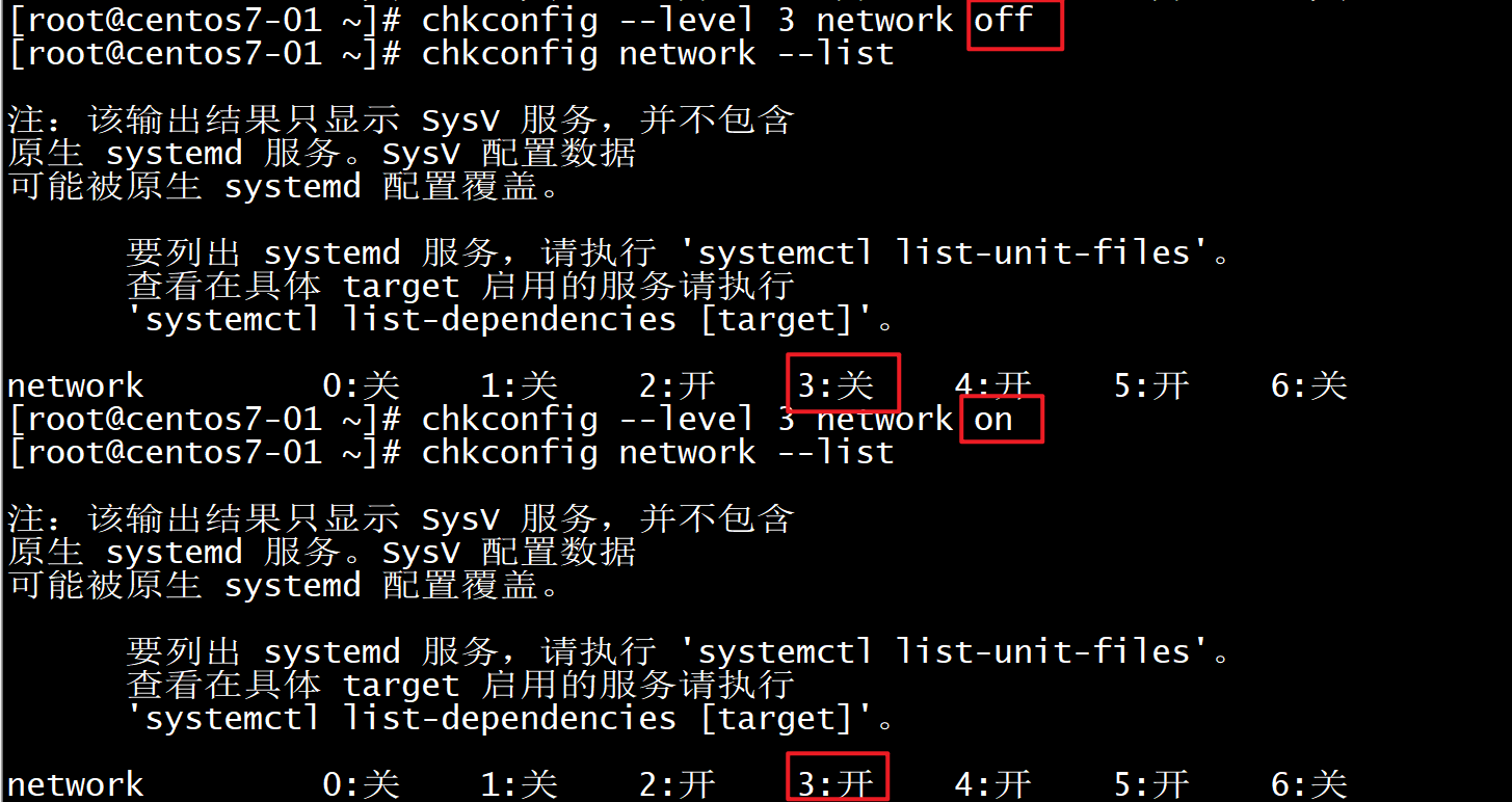 chkconfig --level 5 服务名 on/off # 使某个服务再某个运行级别是自启动还是关闭