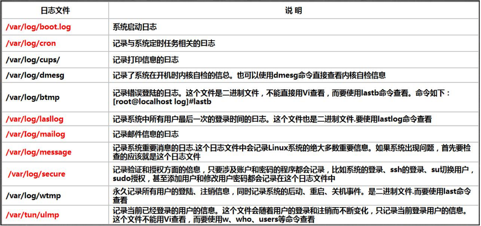 日志文件是重要的系统信息文件,其中记录了许多重要的系统事件,包括用户的登录信息、系统的启动信息、系统的安全信息、邮件相关信息、各种服务相关信息等。