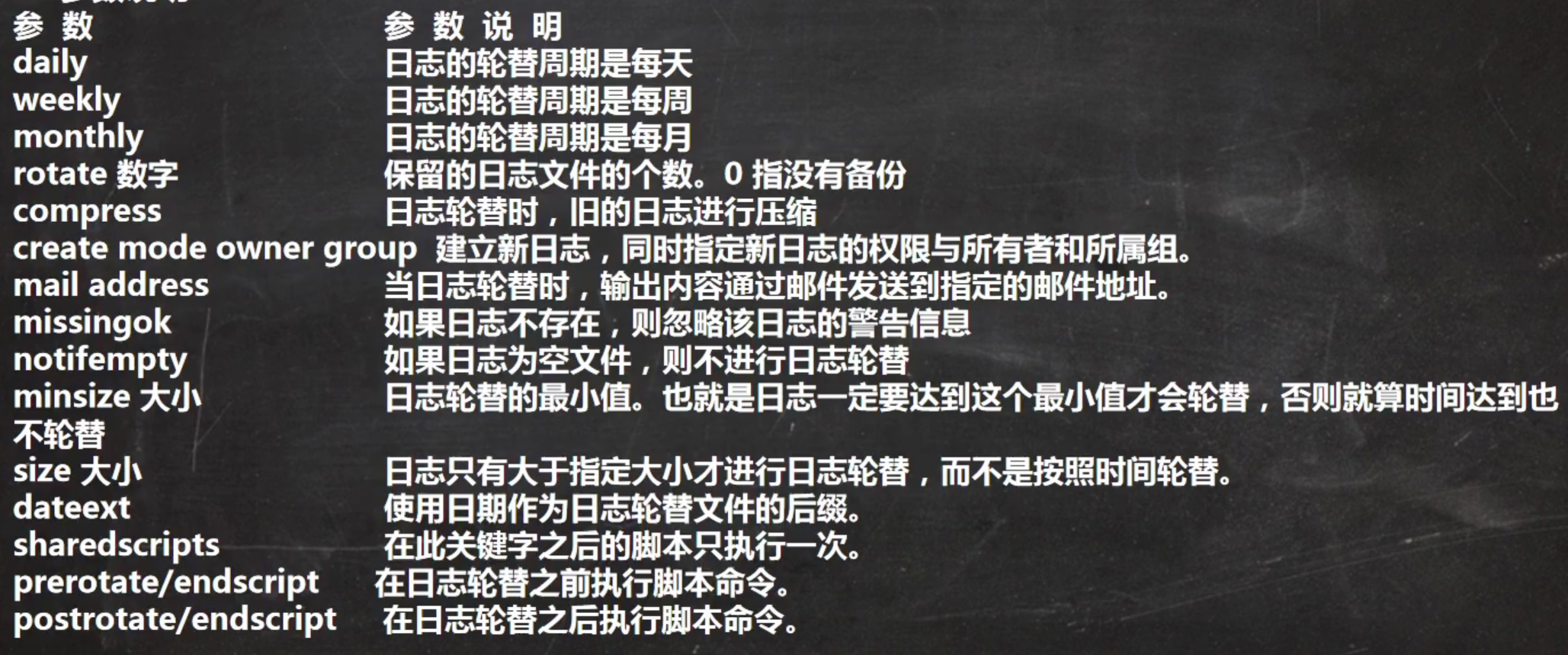 日志轮替就是把旧的日志文件移动并改名,同时建立新的空日志文件,当旧日志文件超出保存的范围之后,就会进行删除。