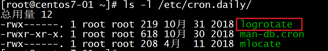日志轮替之所以可以在指定的时间备份日志,是依赖系统定时任务。在/etc/cron.daily/目录,就会发现这个目录中是有logrotate文件(可执行),logrotate通过这个文件依赖定时任务执行的。