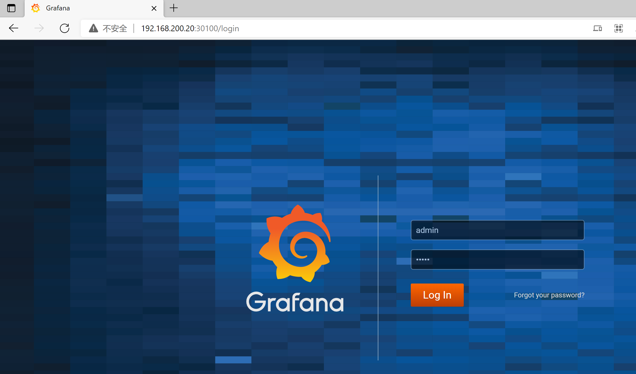 grafana:[Grafana](http://192.168.200.20:30100/login),接着使用初始账号密码为admin登录即可。