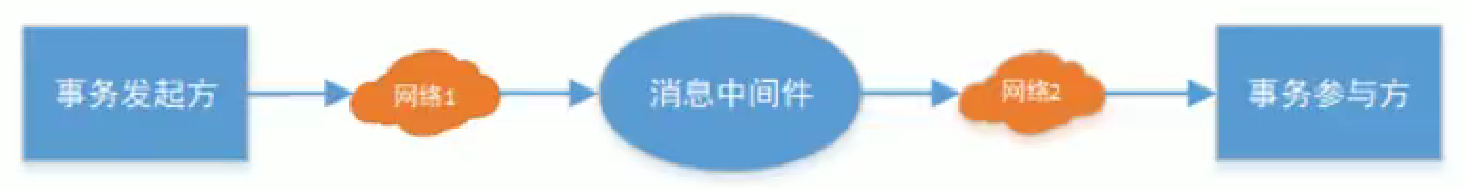 - 事务发起方(消息生产方)将消息发给消息中间件,事务参与方从消息中间件接收消息,事务发起方和消息中间件之间,事务参与方(消息消费方)和消息中间件之间都是通过网络通信,由于网络通信的不确定性会导致分布式事务问题。
