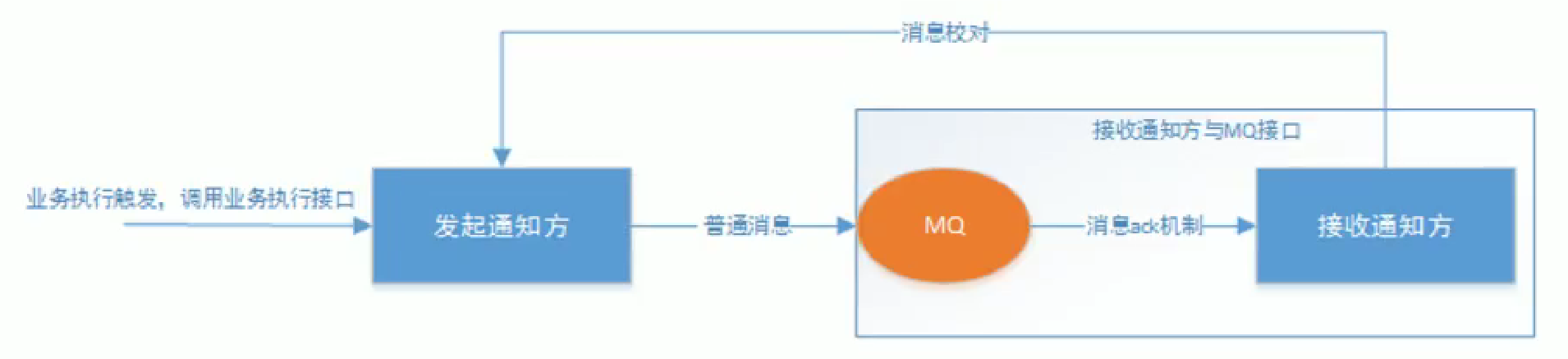 - 消息校对机制。如果尽最大努力也没有通知到接收方,或者接收方消费消息后要再次消费,此时可由接收方主动向通知方查询消息信息来满足需求。