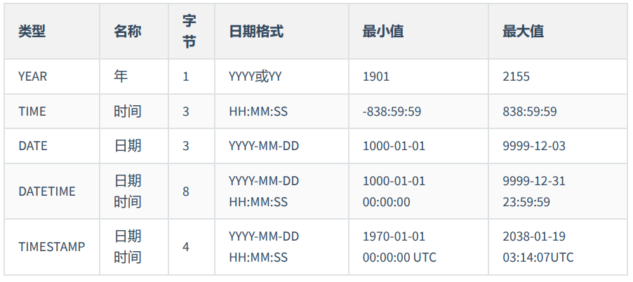- MEDIUMINT:用于较大整数的计算,比如车站每日的客流量等。