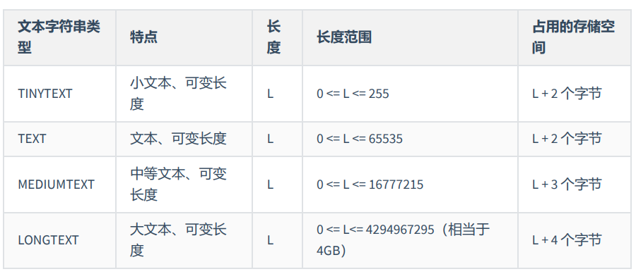 - TEXT和BLOB的使用注意事项(在使用text和blob字段类型时要注意以下几点,以便更好的发挥数据库的性能):