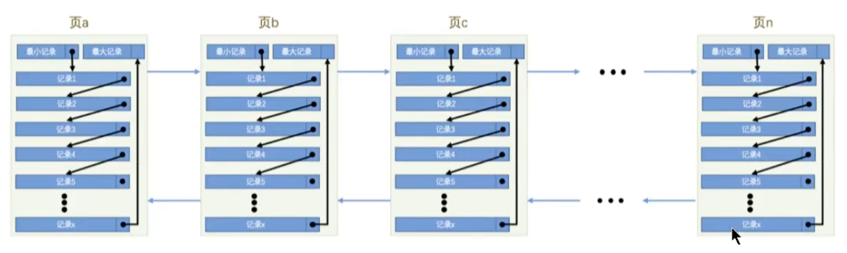 在物理结构上相连,只要通过双向链表相关联即可。每个数据页中的记录会按照主键值从小到大的顺序组成一个单向链表,每个数据页都会为存储在它里边的记录生成一个页目录,在通过主键查找某条记录的时候可以在页目录中使用二分法快速定位到对应的槽,然后再遍历该槽对应分组中的记录即可快速找到指定的记录。